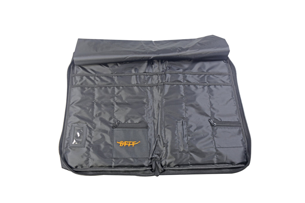 The DFTF Mallet Bag MP1 offers a streamlined design with dimensions of 56 cm in height and 36 cm in width, providing ample space for safely storing and transporting your mallets. Its precise sizing ensures a secure fit, making it an essential accessory for musicians who prioritize protection and convenience in their gear.